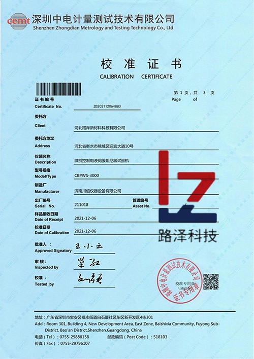 为了更好地满足研发、生产、及检测需求,助力企业高质量发展,我公司订购的阻尼器3000KN伺服动态试验机于2021年12月份进厂,并具备第三方检测单位出具的校准证书,这是我们在获得“AAA级企业信用等级”证书后的又一大突破,此试验机的存在,我们完全可以做到产品的出厂自检,并且出具产品检验报告,让客户对产品更放心,对我们更加信任。